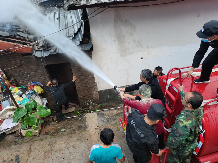 普洱制鹽 報(bào)道 2月1日,虎年大年初一,人們正在歡度新春佳節(jié)。12:51,普洱制鹽分公司接到磨黑鎮(zhèn)鎮(zhèn)政府的緊急電話:鎮(zhèn)內(nèi)一磚木結(jié)構(gòu)的民房發(fā)生火災(zāi),請(qǐng)求立即救援。
